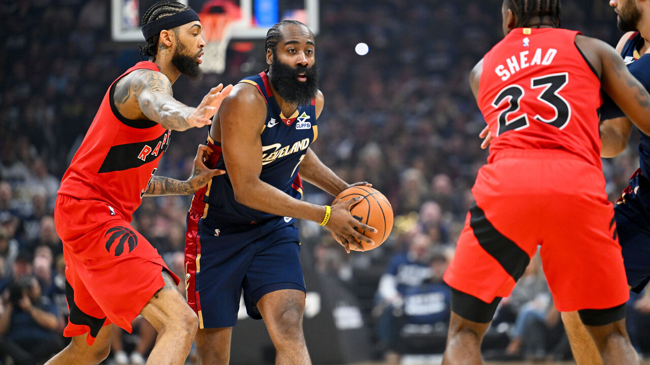 The Cavs need Mitchell and Harden to be better than they were in Game 4 if Cleveland wants to escape the first round, let alone flirt with its Finals upside. A stout Raptors defense has done a great job mixing up its coverages to cause the star guards havoc. Toronto is face-guarding and top-blocking to eliminate Mitchell and Harden from some possessions, bringing different forms of pressure and double-teams to force the ball out of the duo's hands, and generally taking away Cleveland's first actions (and options) on possessions.